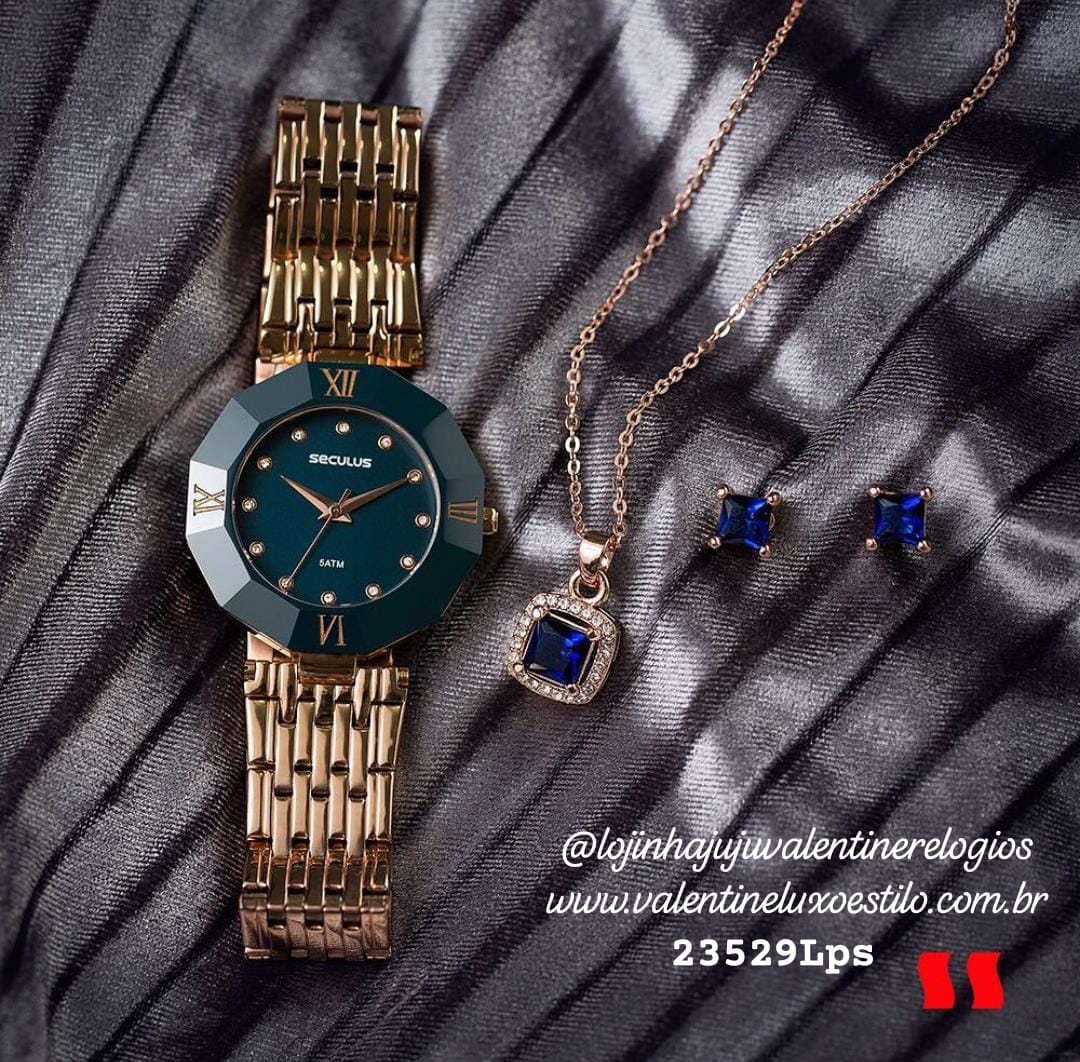 Relógio Feminino Seculus 23529LPSKRQ8 Caixa Aço Rose com Cerâmica e Pulseira Aço Rose