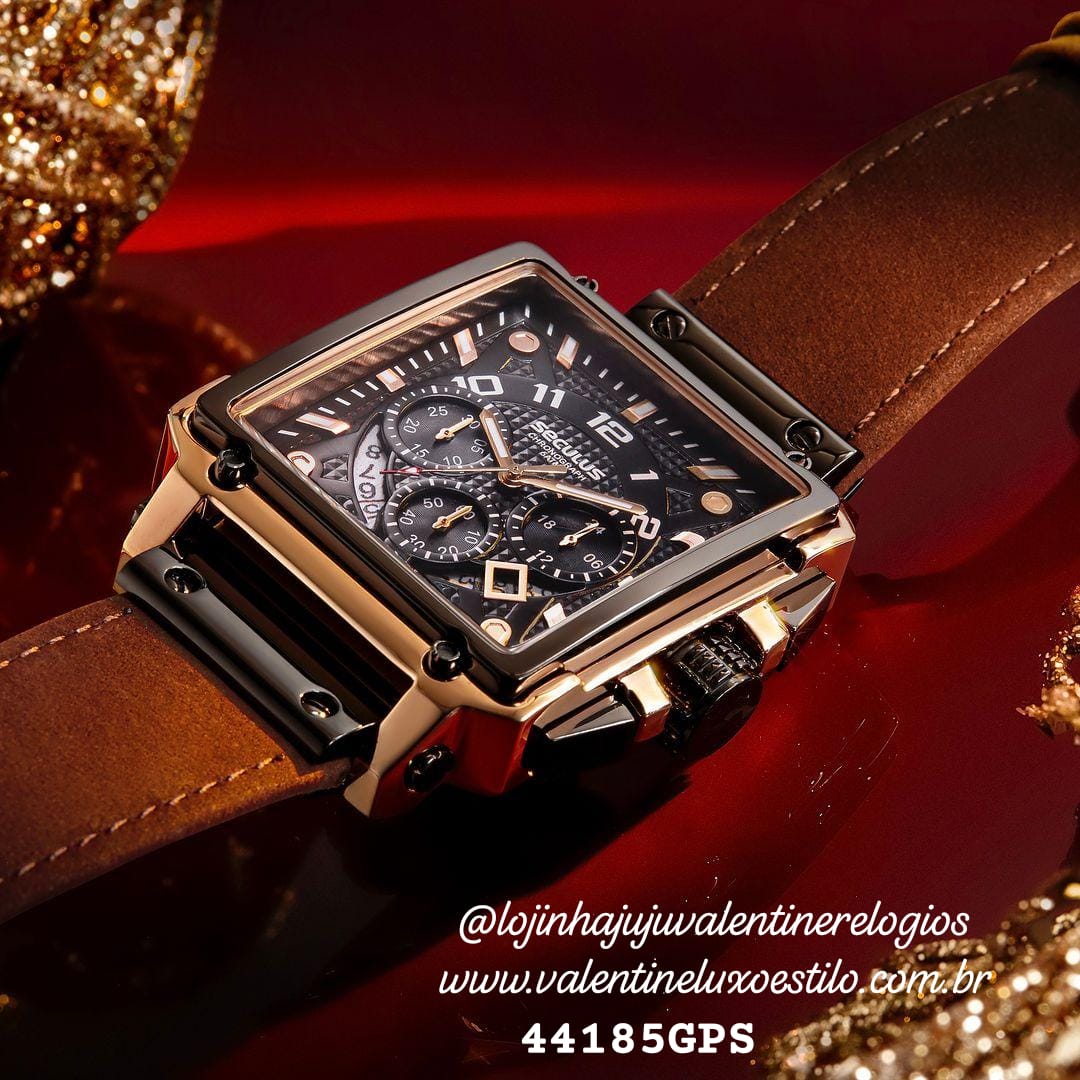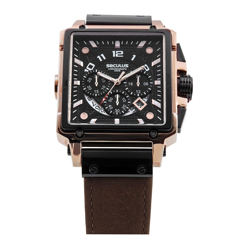 Um acessório que une sofisticação e funcionalidade! Este relógio é um modelo cronógrafo todo em aço, com caixa quadrada e mostrador em camadas. Sua pulseira é em couro legítimo de fácil ajuste, ótimo para ocasiões mais requintadas. Esse relógio possui a caixa com 4,2 cm de tamanho.