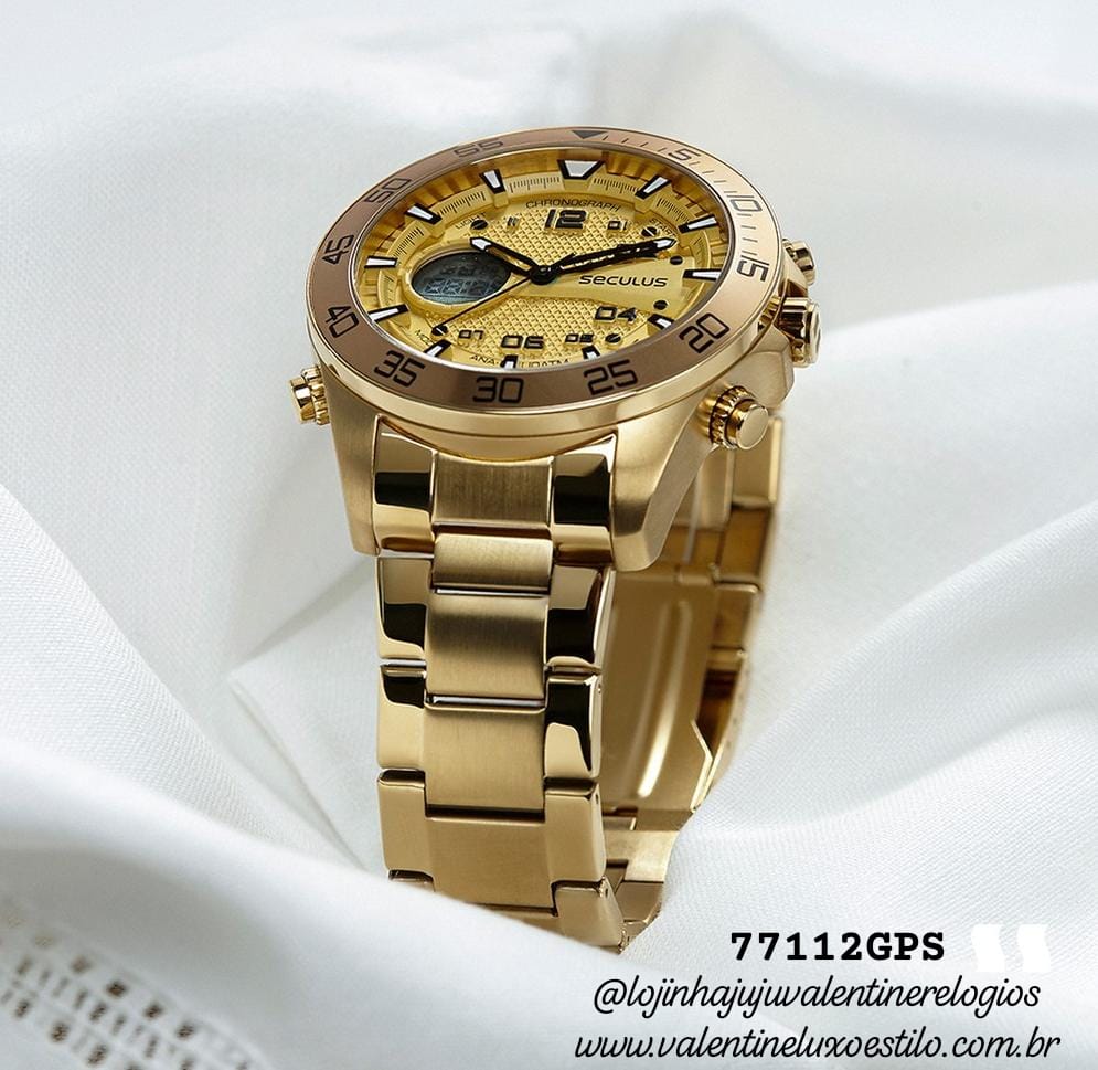 Relógio Masculino Esportivo Anadigi Aço Dourado Referência: 77112GPSVDA1