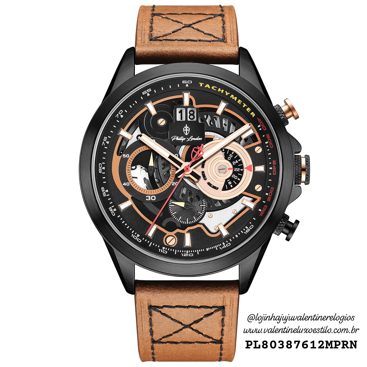 RELÓGIO PHILLIP LONDON DESTROYER LEATHER BROWN 45MM PL80387612MPRN