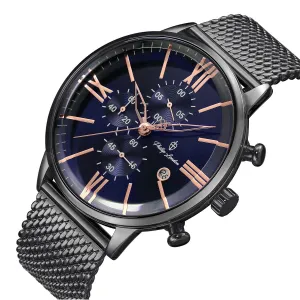 Inspirado na beleza do diamante, este magnífico relógio exibe um brilho singular, digno de uma joia. Sua composição torna-o perfeito para uma presença marcante, sendo facilmente combinado com trajes formais e refletindo uma elegância atemporal. Equipado com um mecanismo Seiko que integra as funções de cronógrafo e calendário, a pulseira em aço grafite, combinada a um mostrador azul enriquecido com detalhes rosegold, eleva ainda mais o esplendor de seu design magnífico. Visando assegurar sua completa satisfação e tranquilidade, estendemos a você uma garantia de um ano para este produto, comprometendo-nos a oferecer uma experiência de uso excepcionalmente segura e confiável.